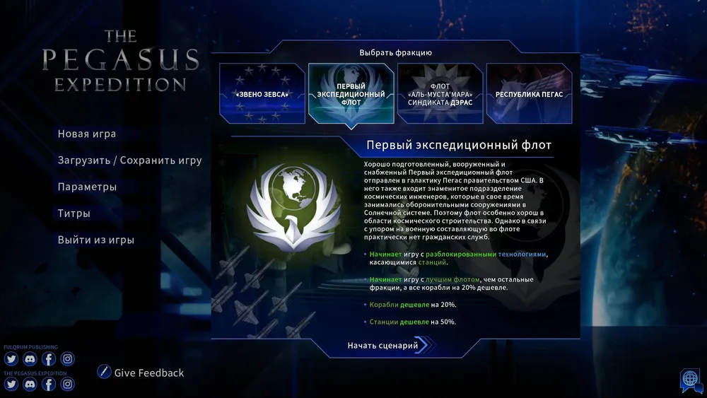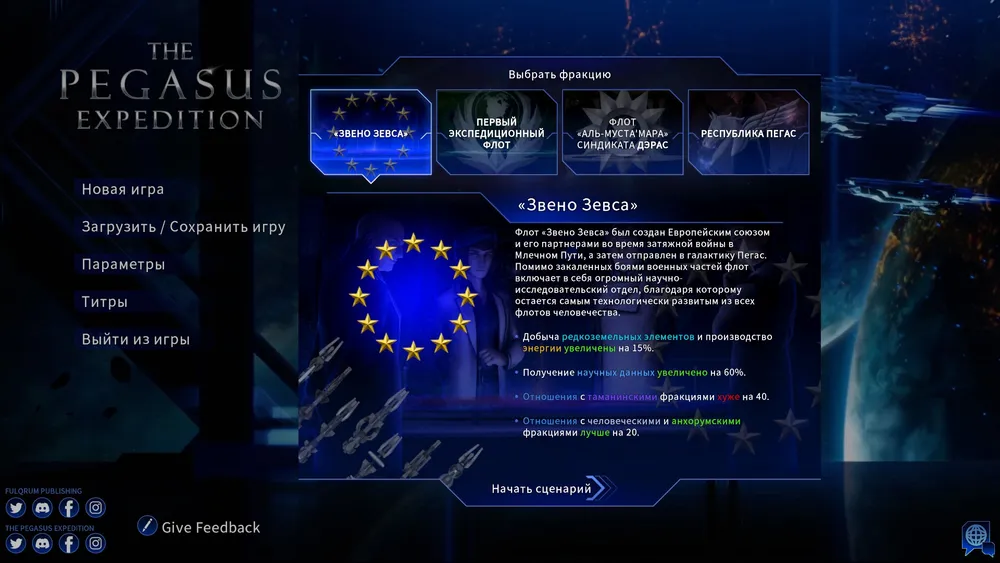 . Сейчас их четыре, позже будет больше. Выбирайте с умом, директор, поскольку именно игрок будет определять судьбу всей галактики Пегас!