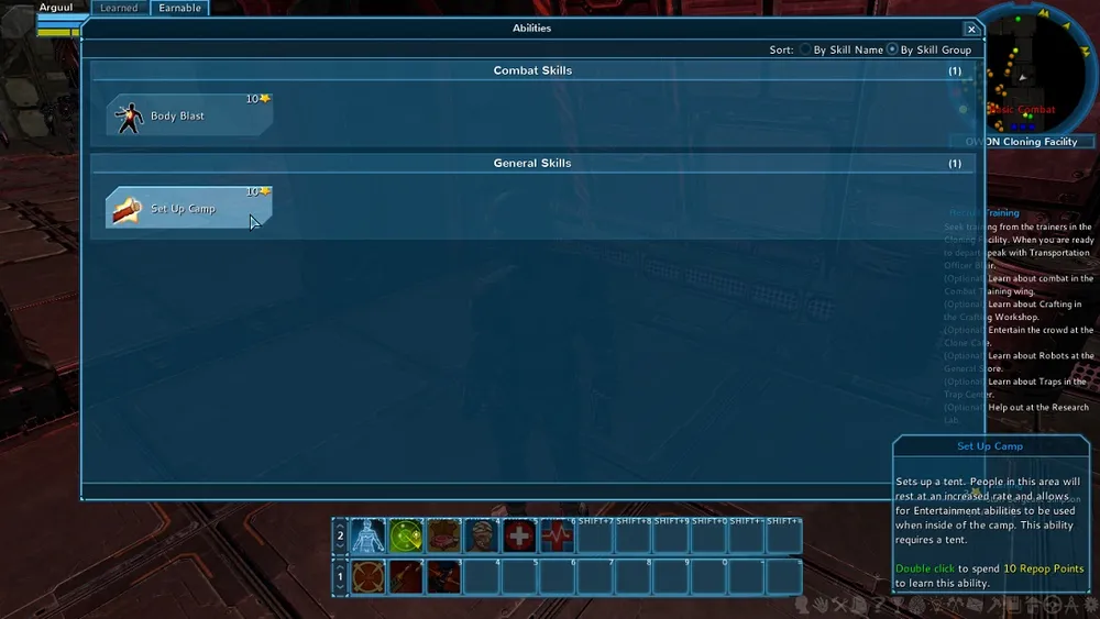 На второй вкладке (Earnable) – способности, доступные для изучения, при условии, что у вас хватает на них очков тренировки (Training Points, или Repop Points), которые изображены в виде звездочек: